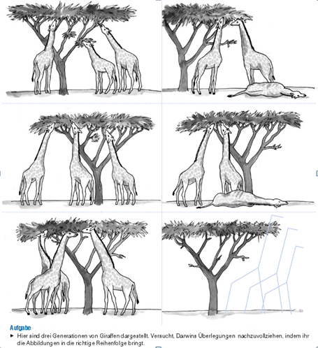 Girafeksemplet er enestående godt. Det demonstrerer tydeligt effektiviteten af naturlig selektion. Der er hele tiden variationer indenfor en art, så det er nærliggende at forestille sig, at enkelte giraffer tilfældigt var udstyret med en lidt længere hals end deres artsfæller. Med et regelmæssigt pres i form af mangel på føde er det et realistisk scenarie, at kun dyr med de længste halse overlevede og reproducerede sig.