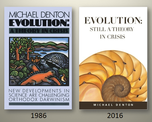 Denton troede som de fleste på, at evolutionsteorien på en troværdig måde gjorde rede for tilblivelsen af arterne. Da han arbejdede på sin Phd, opdagede han imidlertid, gennem egen forskning, at der var alvorlige problemer med Darwins teori.