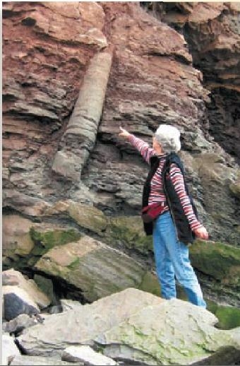 Hvorvidt dette er relevant til den egentlige ID-diskussion, skal jeg lade være usagt, men interessant er det ikke desto mindre. En kontakt sendte mig et billede af sig selv fra Novo Scotia, Canada, hvor hun er fotograferet foran en klippevæg og et meget interessant fossil af et træ. Det interessante er, at træet står oprejst på tværs af de vandrette sedimenteringer, der skulle være aflejret over hundredtusinder eller måske millioner af år.